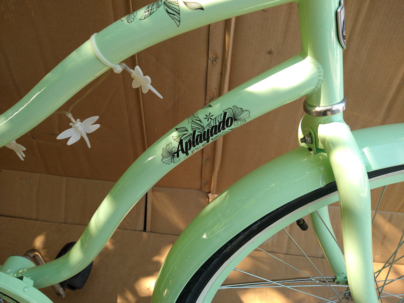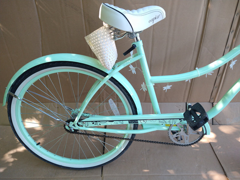 Medium beach cruiser ladies coaster in minty green. 26” balloon tires, fenders and kickstand.
