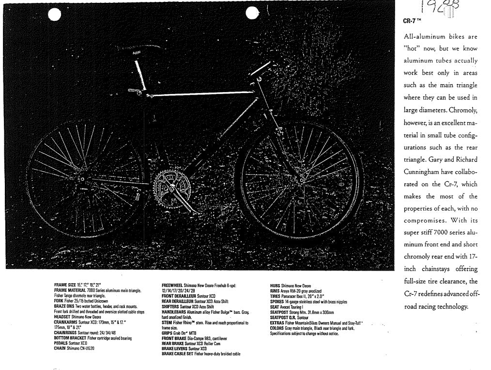 Fisher CR-7 1988 17" Mtb Charcoal,used, no tax, no warranty